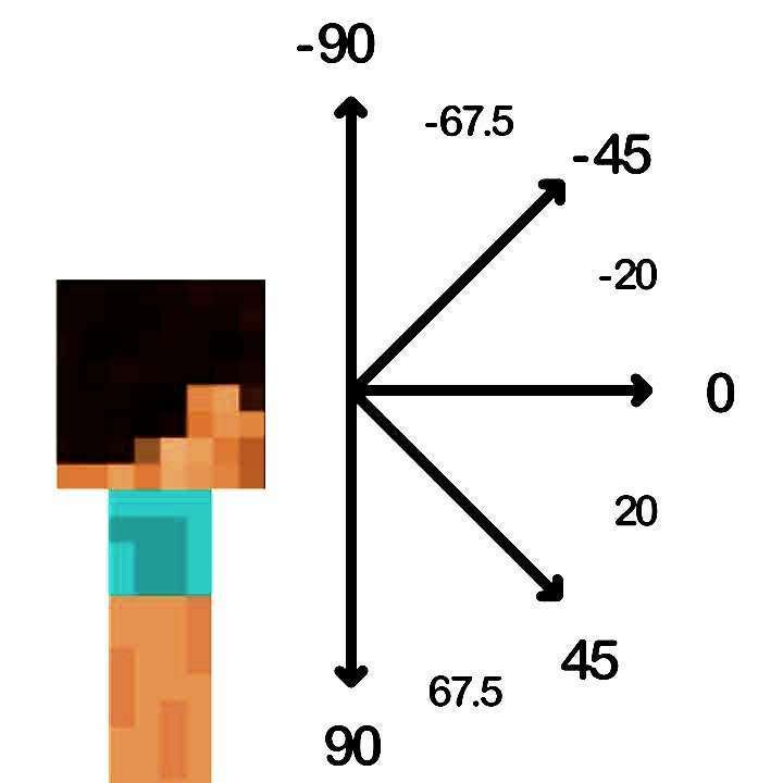 根据旋转限制目标的选择。旋转有两种类型:x 旋转,表示围绕 x 轴的垂直旋转;y 旋转,表示围绕 y 轴的水平旋转。x 旋转范围在 -90 到 90 之间(总共 180°),表示从向上看转到向下看;y 旋转范围在 -180 到 180 之间(总共 360°),从北开始并结束,顺时针环绕。
