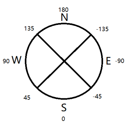 | 东北 | [ry=-90, rym=-180] |